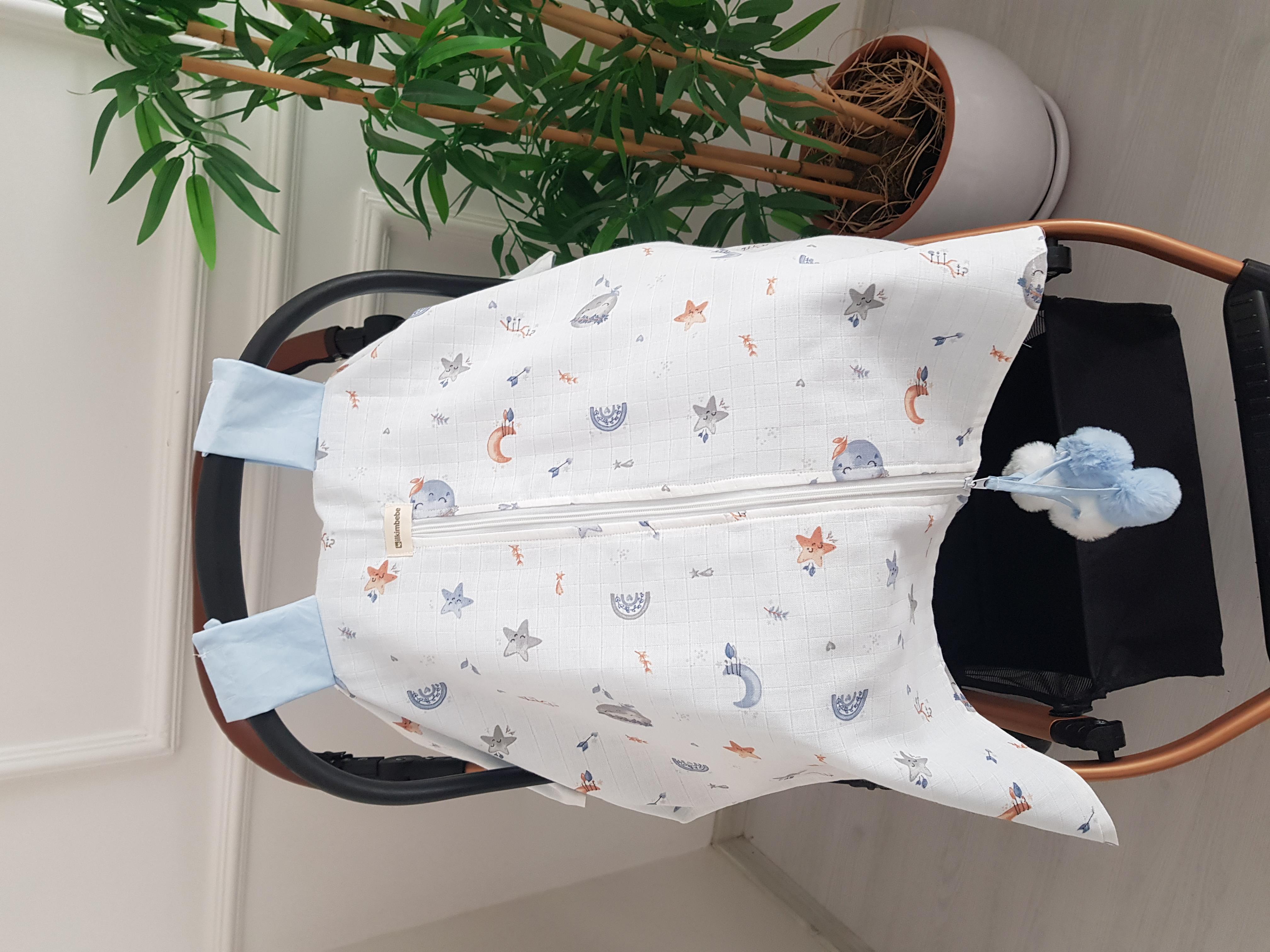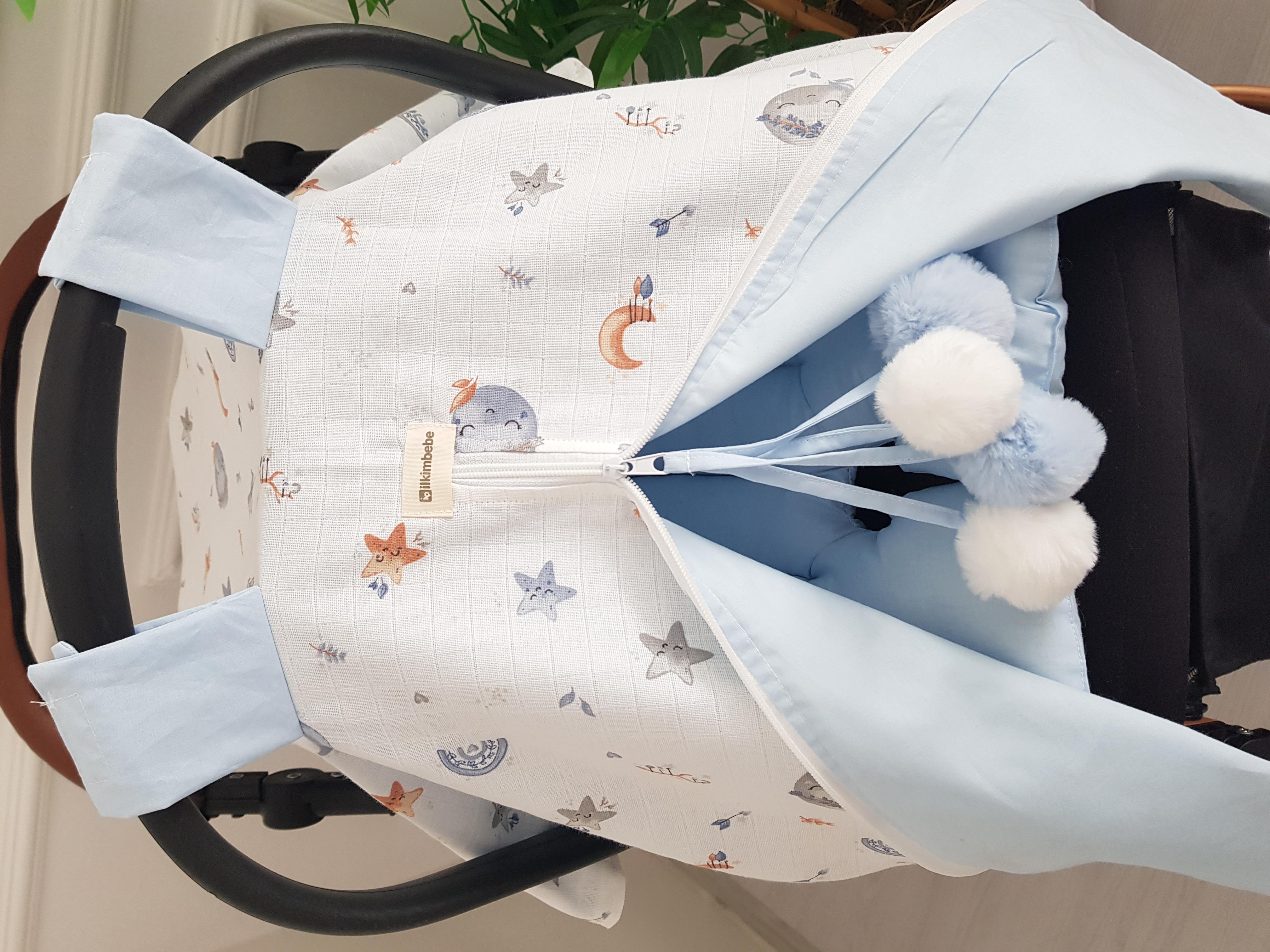 Dolunay Büyük Ponponlu Fermuarlı Bebek Puset Örtüsü ve Puset Minderi (İB457229)